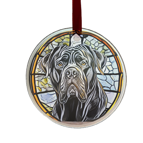 This adorable ornament is the perfect size for a medal, memorial gift, holiday ornament, OR sun-catcher! It is 3" in diameter and is made of glass. Each design is created with thought to highlight the dog and comes with a satin ribbon.
